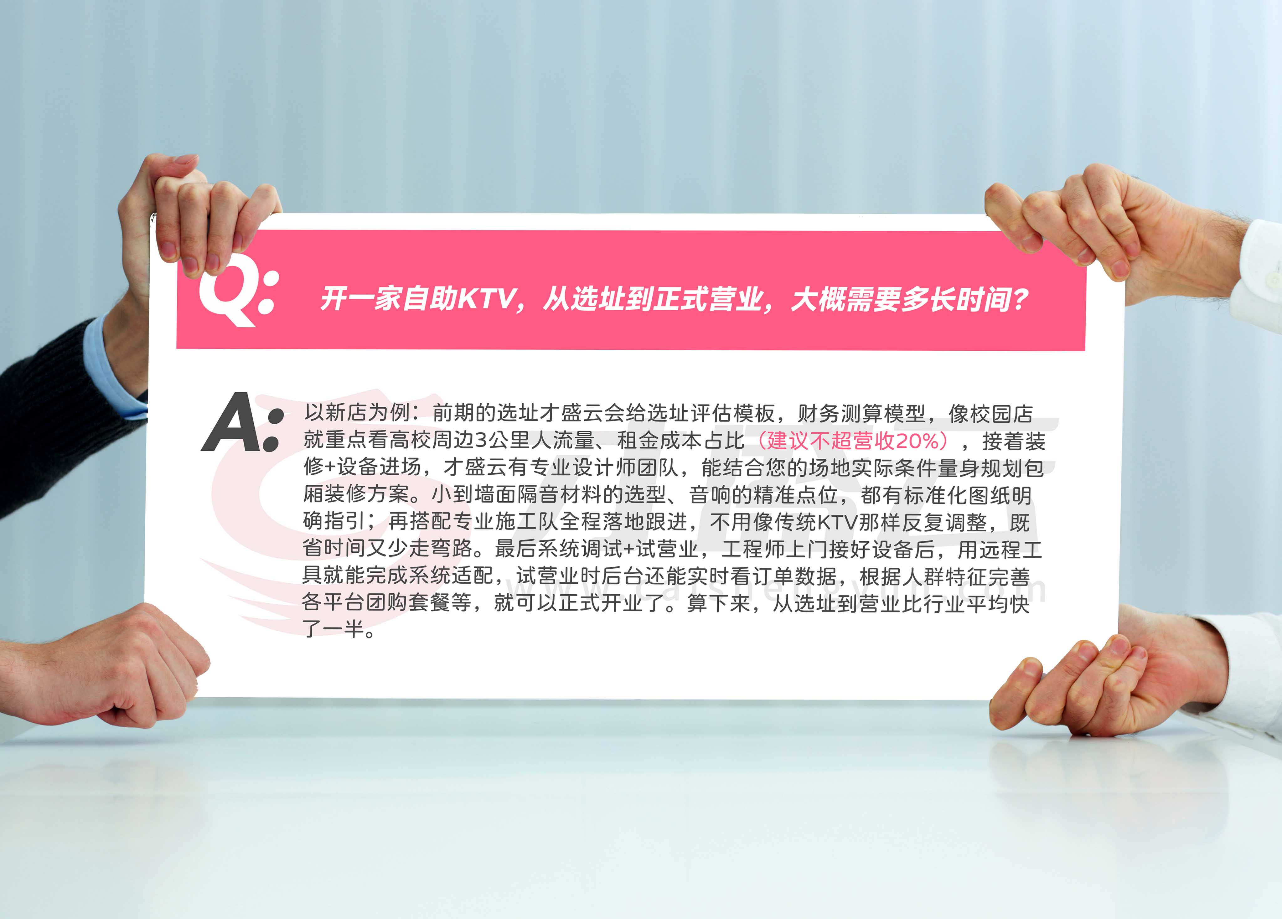 若您在自助KTV开店路上仍有疑问,或是想深入了解才盛云,欢迎随时留言 —— 我们始终在这里,为您答疑解惑。 自助KTV的蓝海已至,从技术落地到运营赋能,我们陪您轻松抢占智能娱乐新风口,让开店少走弯路。 与您携手,我们为每一段歌声注入科技的温度,让自助娱乐的体验更具质感。诚邀您并肩同行,共赴娱乐消费的新蓝海,在歌声与科技的交融里,共拓行业新可能!