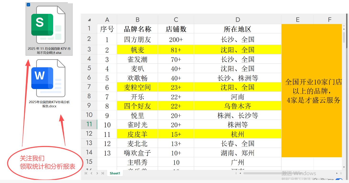 2.门店规模快速扩张:不完全统计显示,当前全国自助KTV门店数已突破1500家(基于394条记录推算),单品牌门店数分化明显,头部品牌(如四方朋友)门店超200家,中小品牌多以“5-20家门店”区域化运营为主。